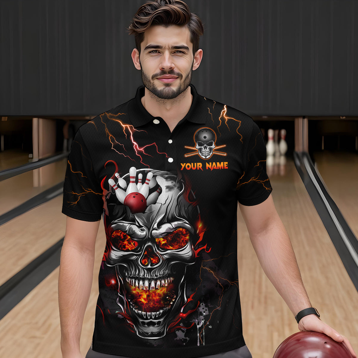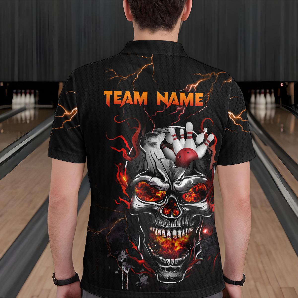 Thunder Bowling Jerseys Men Polo & 1/4 Zip Shirt Skull Bowling Shirt for Men HNT01