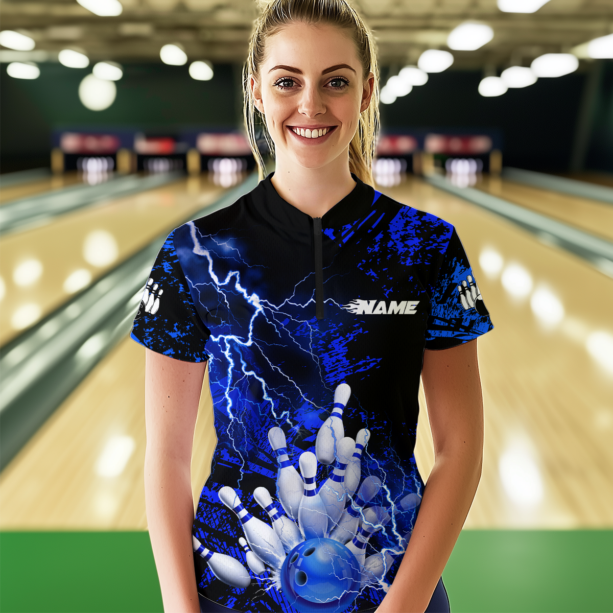 Blue Thunder Lightning Bowling Shirt Custom Colorful Bowling Jersey Men Women Team MBL67