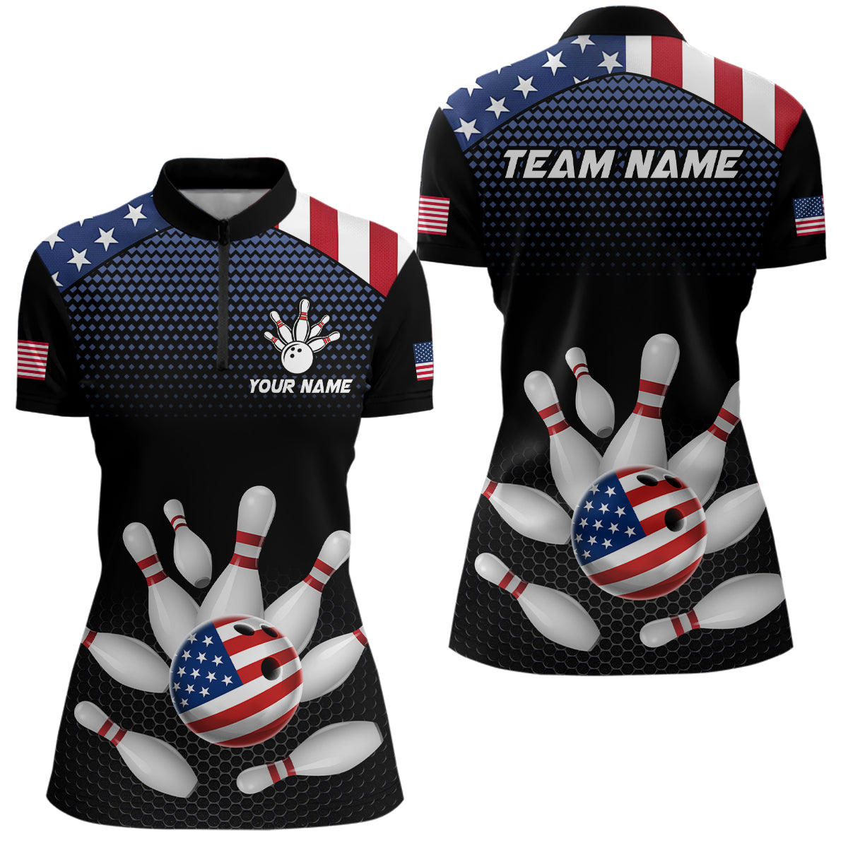 Custom American Flag Bowling Jersey Men Women Patriotic Bowling 1/4 Zip Shirt For Team BDT492