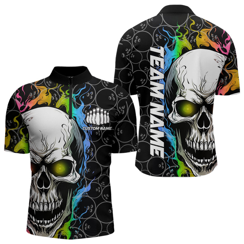 Custom Skull Bowling Quarter-Zip Shirt For Men,Flame Bowler Jerseys 5008IPHW