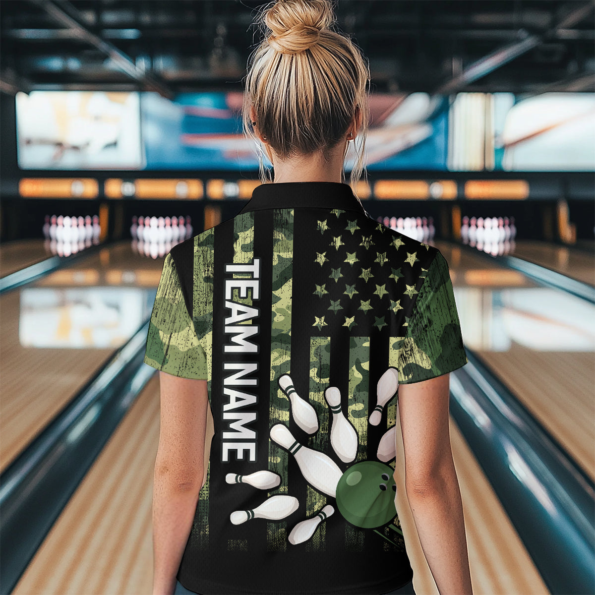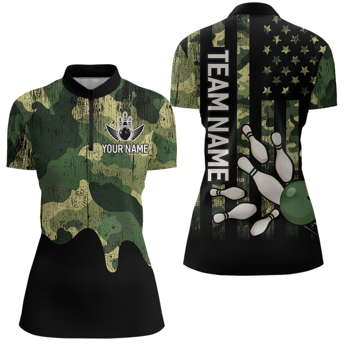 Personalized Camouflage Bowling Shirt American Flag Quarter-Zip Bowling Team Jersey QZT678