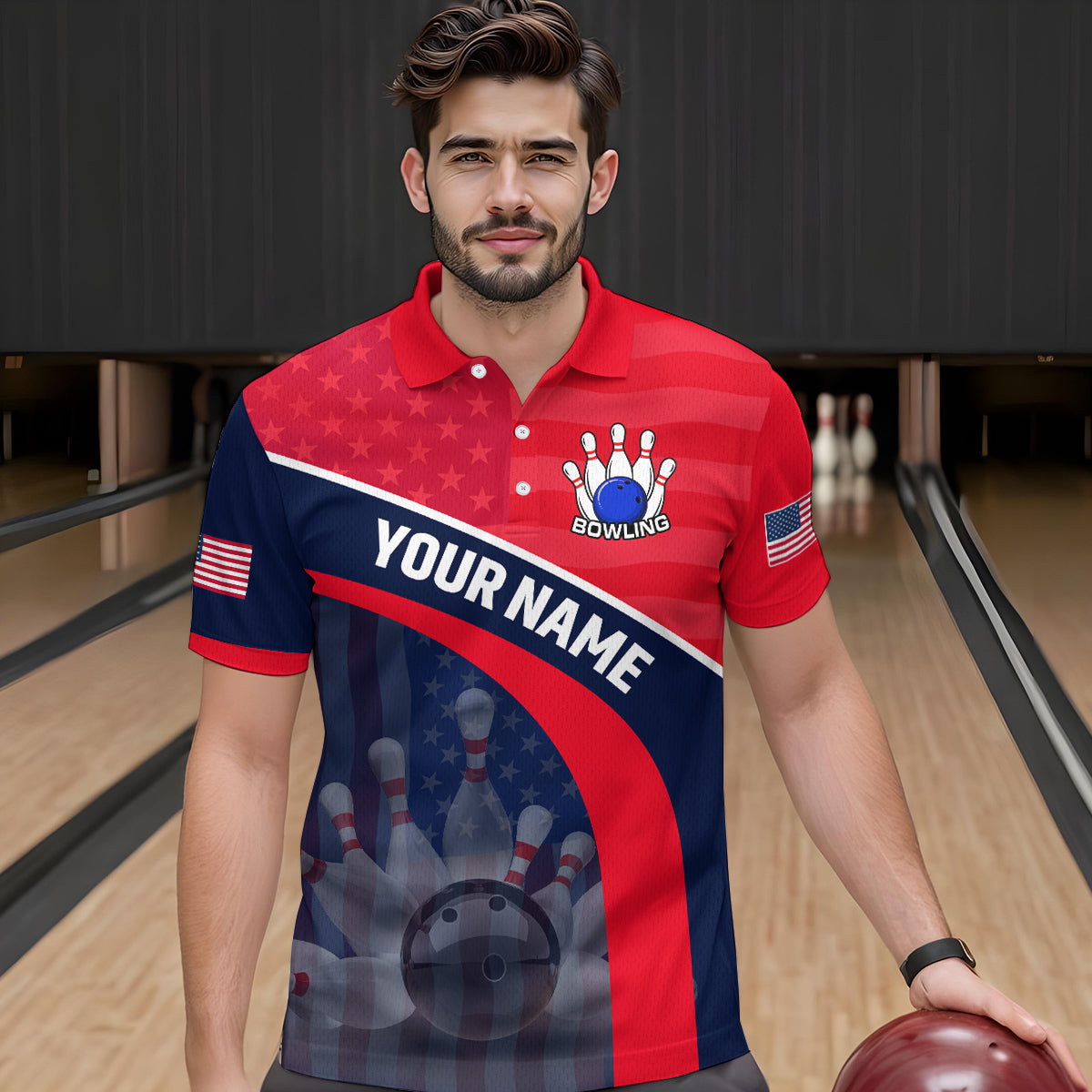 Personalized US Flag Bowling Jersey for Men Bowling Gifts Bowling Team Jersey with Name Polo & 1/4 Zip HNT28