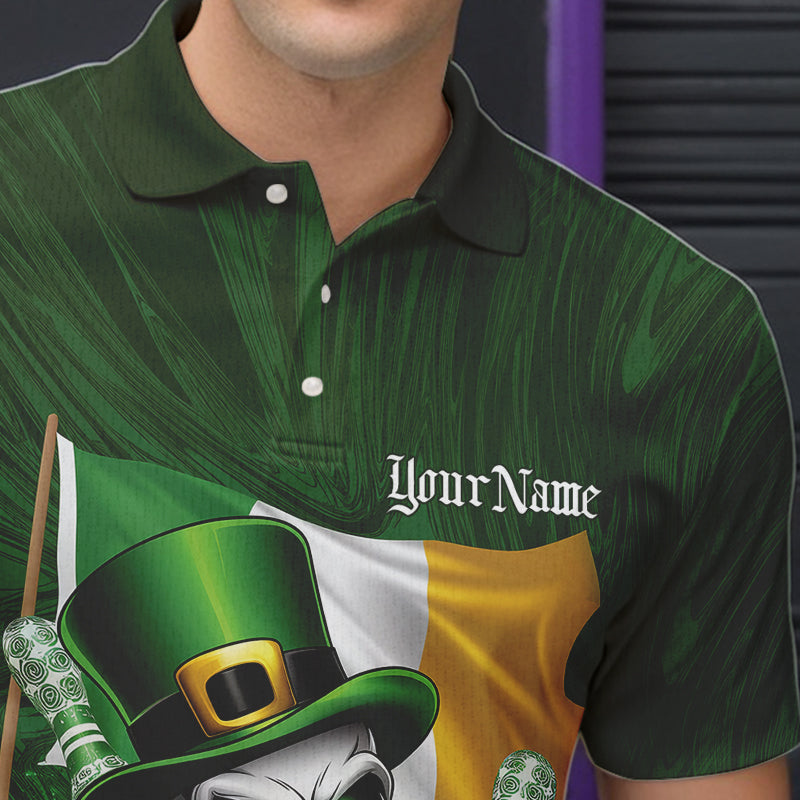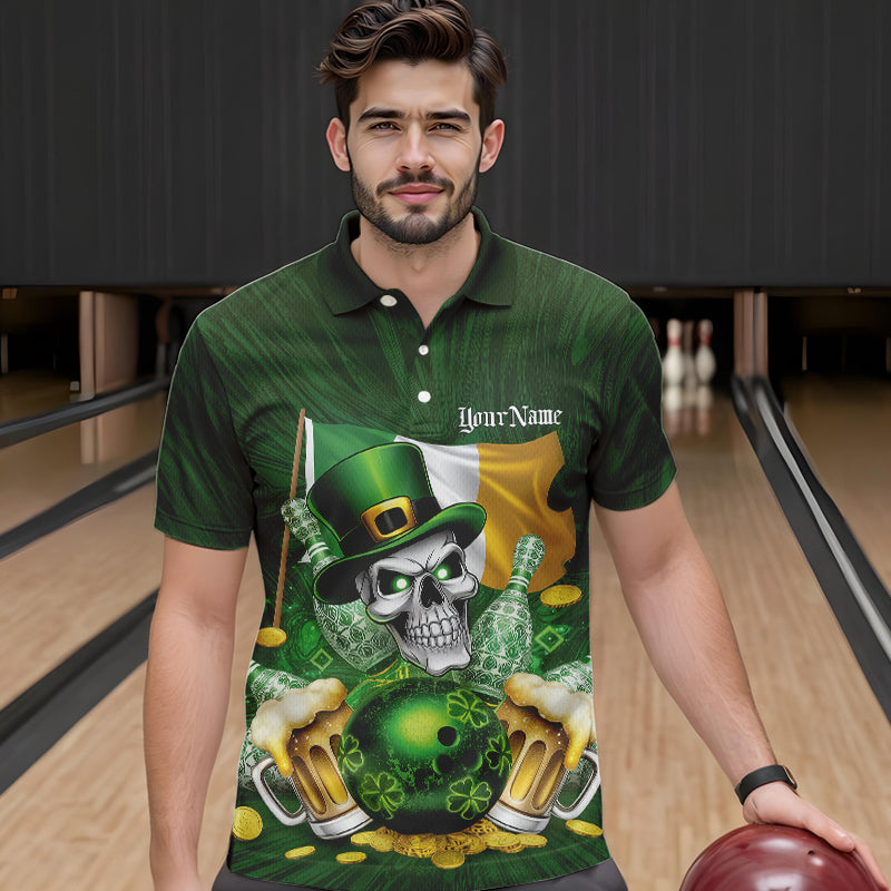 Custom Irish Flag St Patricks Day Bowling Polo Team Shirts For Men, Skull Leprechaun Bowling IPHW8594