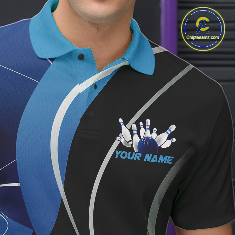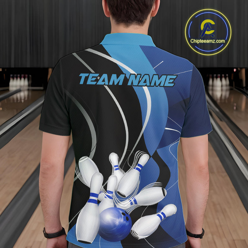 Custom Black And Blue Bowling Jerseys, Men Bowling Polo Shirt Team Uniform IPHW9226