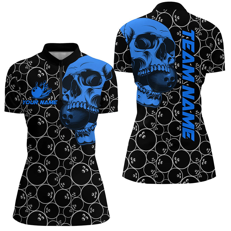 Black Bowling camo blue Skull bowling shirts for women custom bowling team jerseys, gifts for bowlers NQS8725