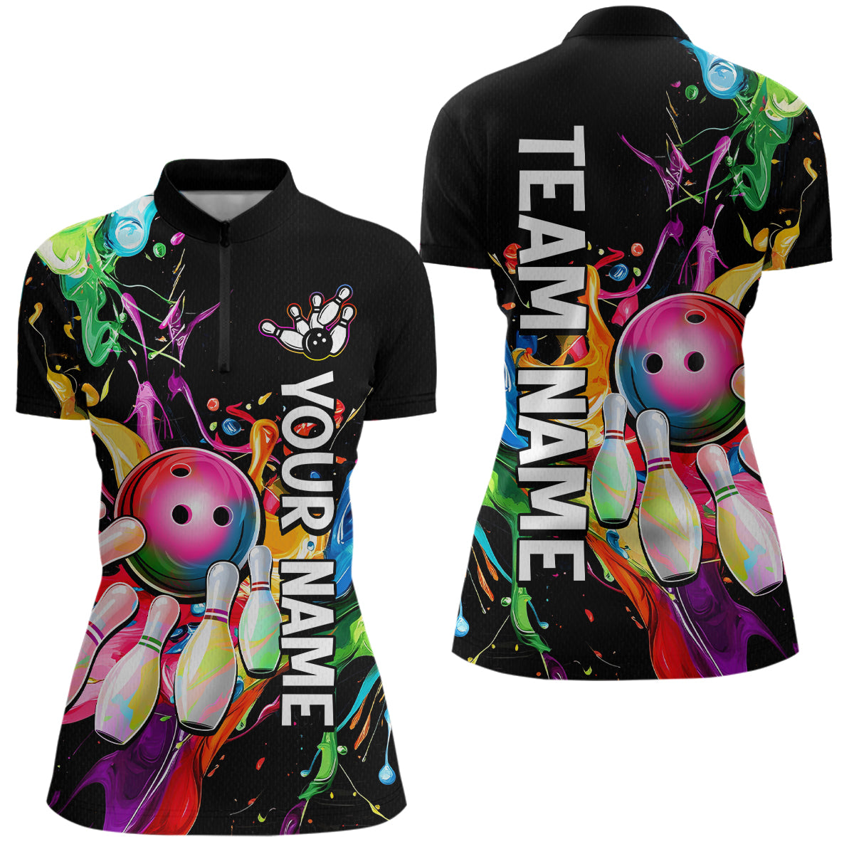 Colorful Bowling Shirt Bowling Jersey Women Personalized Bowling Team Jersey Polo & 1/4 Zip HNT33