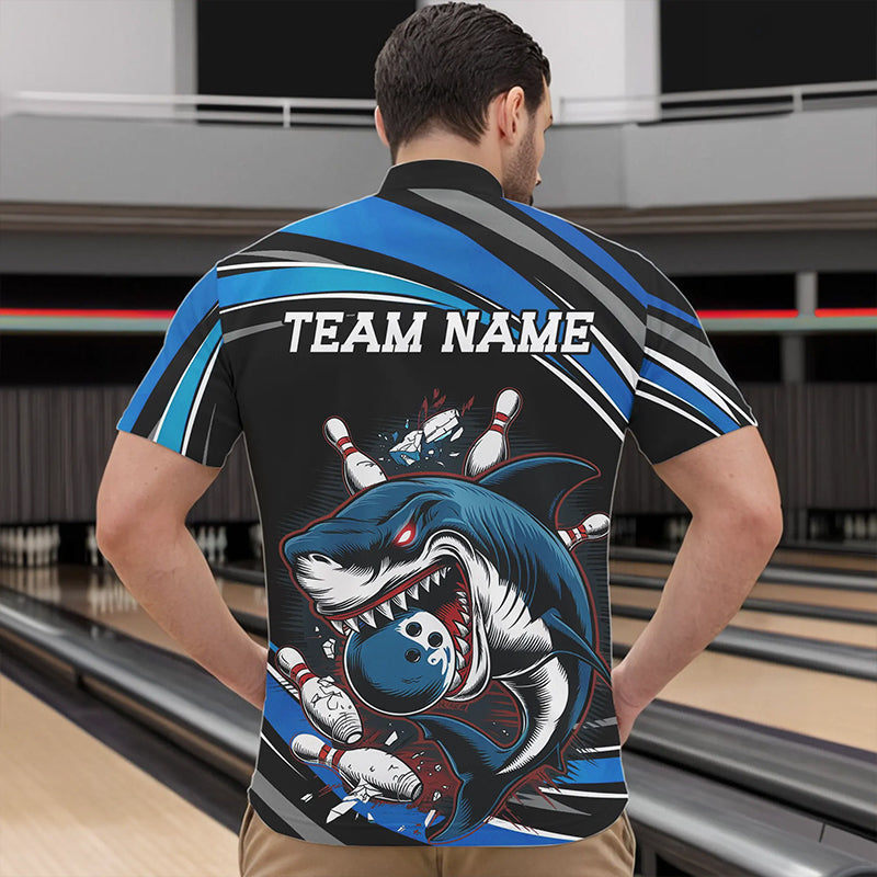 Black And Blue Custom Shark Bowling Team Quarter-Zip Shirts For Men, Shark Bowling League Shirt IPHW8727