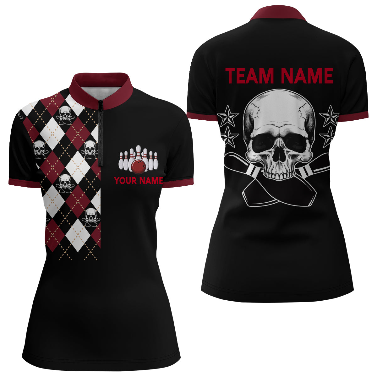 Skull Bowling Quarter Zip Shirt Women Custom Bowling Jersey Bowling Team 1/4 Zip Shirt BDT85