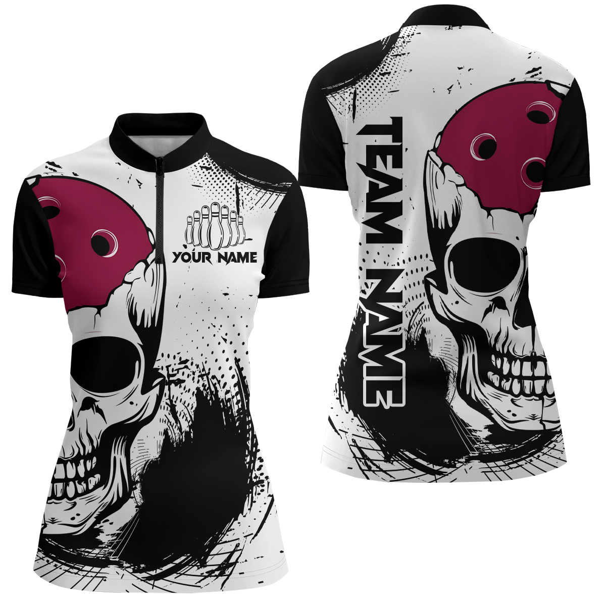 Skull Bowling Shirt for Women Custom Bowling Jersey Bowling 1/4 Zip Shirt Bowling Team League QZT293