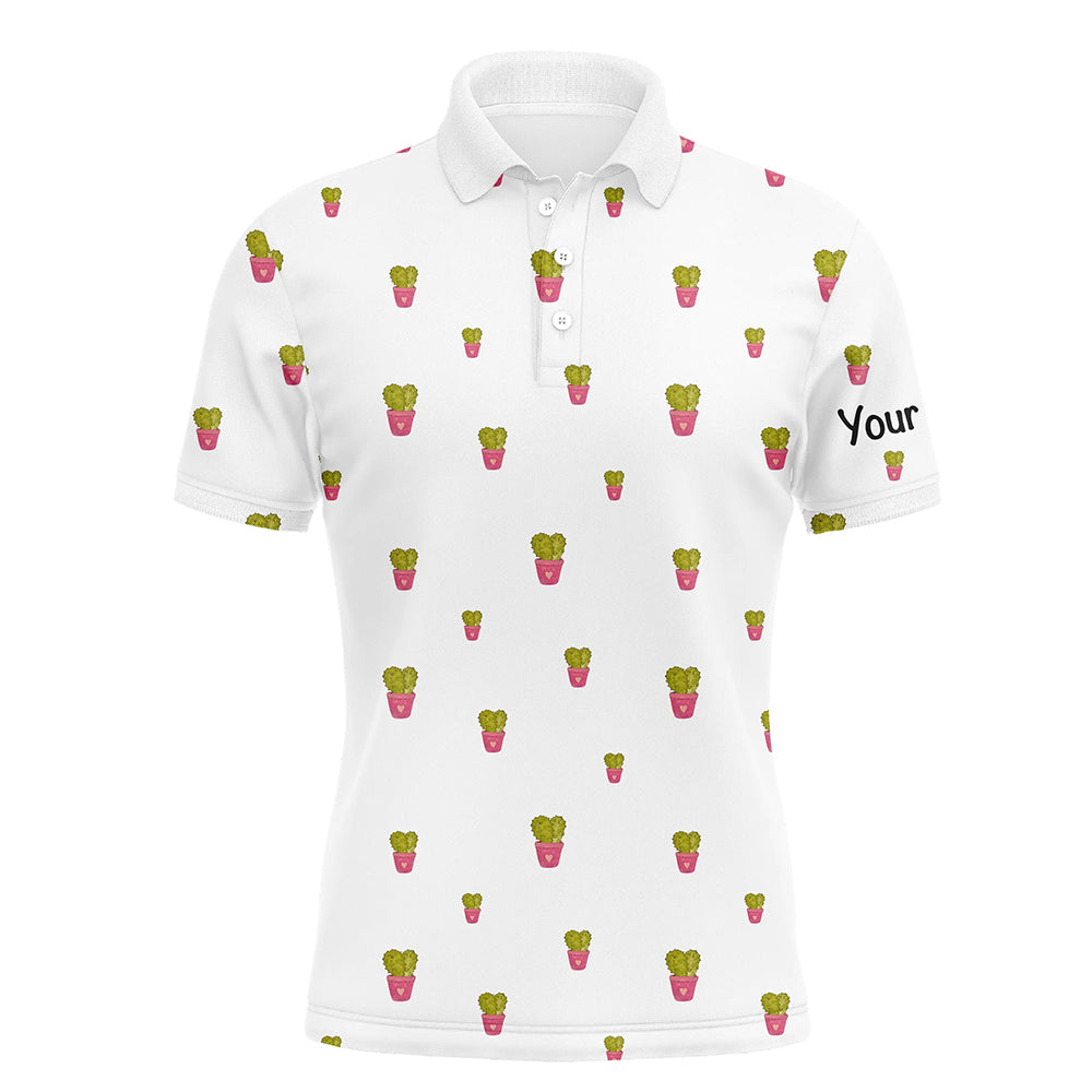 Personalized cute cactus white pattern mens golf polo shirts custom cactus golf shirt, golfer gifts NQS8320