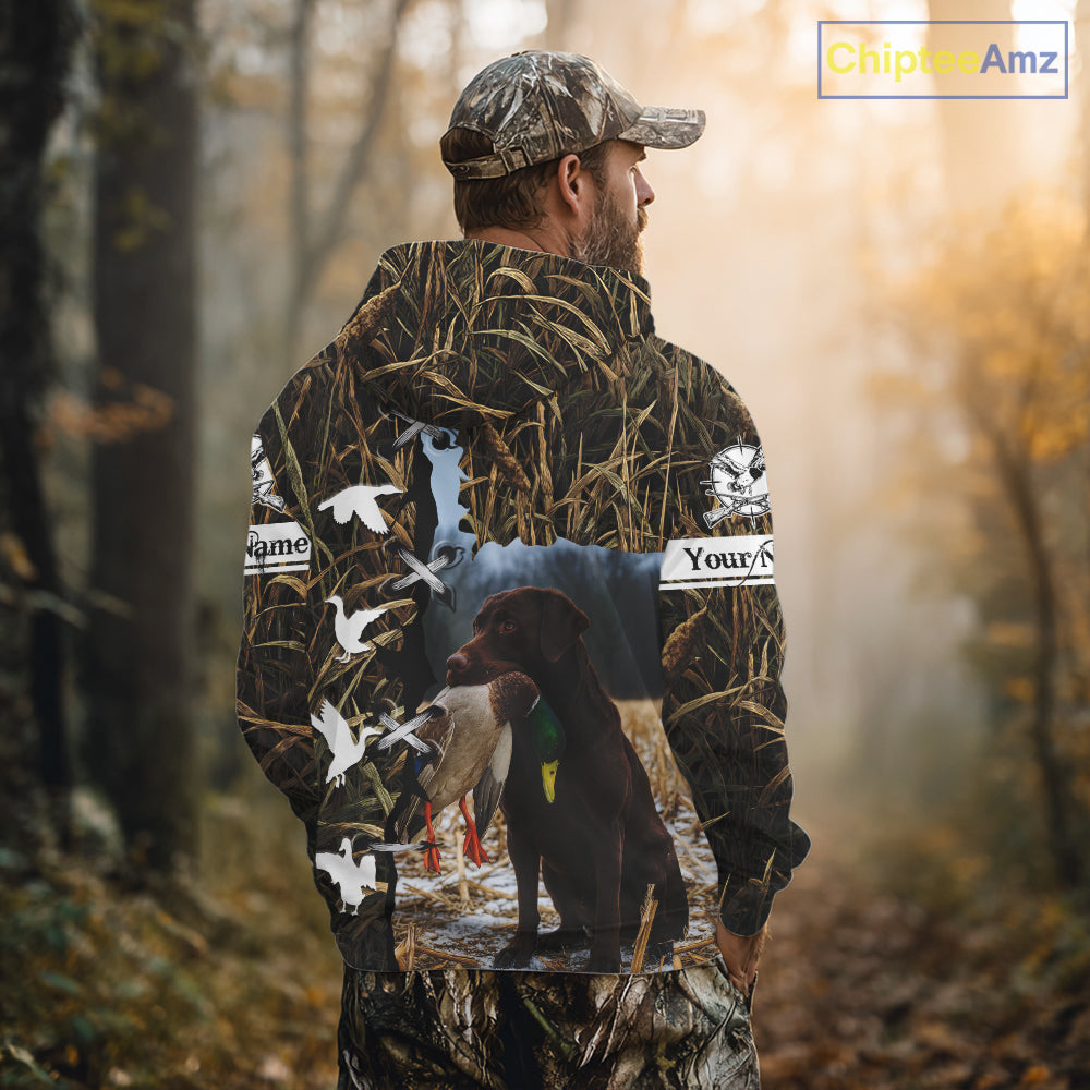 Brown Camo Duck Hunting With Chocolate Lab Dog 3D All Over Printed Shirts, Dog Hunting Clothes NHT143