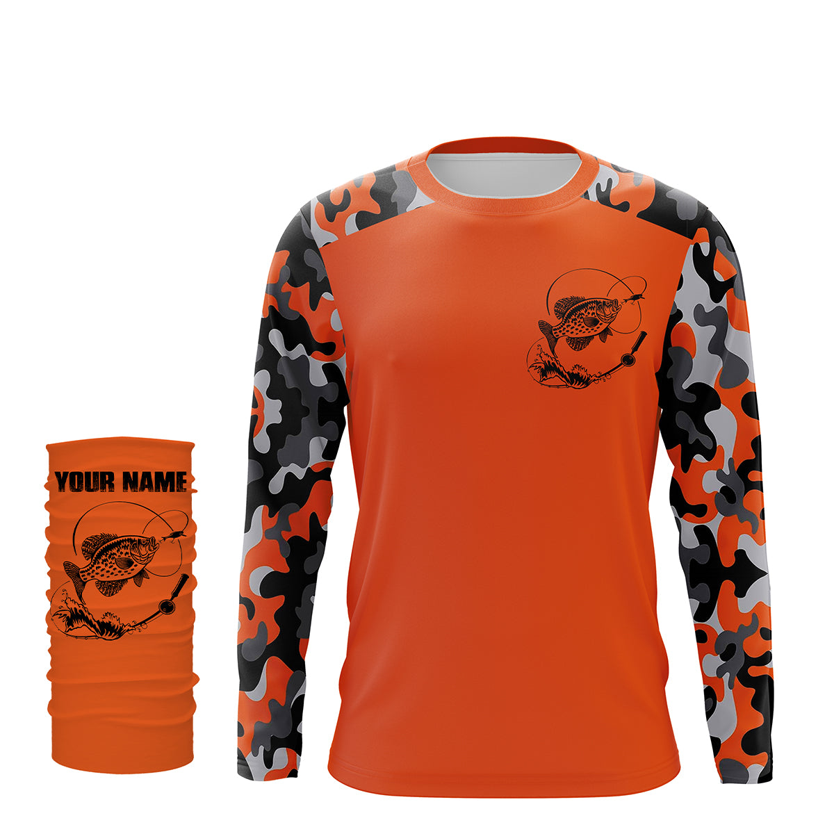 Custom Name Crappie Fishing Camouflage Orange Performance Fishing Shirt, Crappie Fishing Jerseys FSD2476