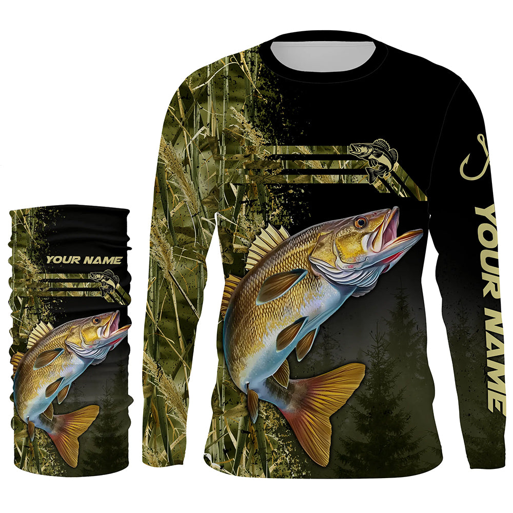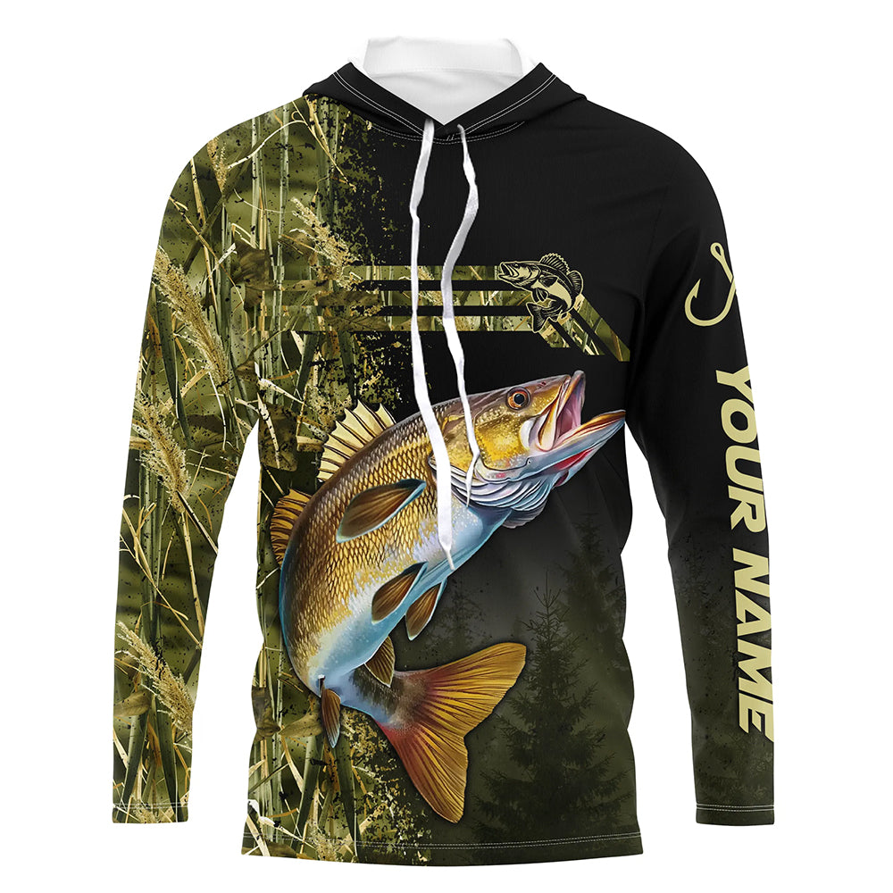 Walleye fishing camouflage Custom performance long sleeve Fishing Shirts, Walleye Fishing jerseys NQS4863