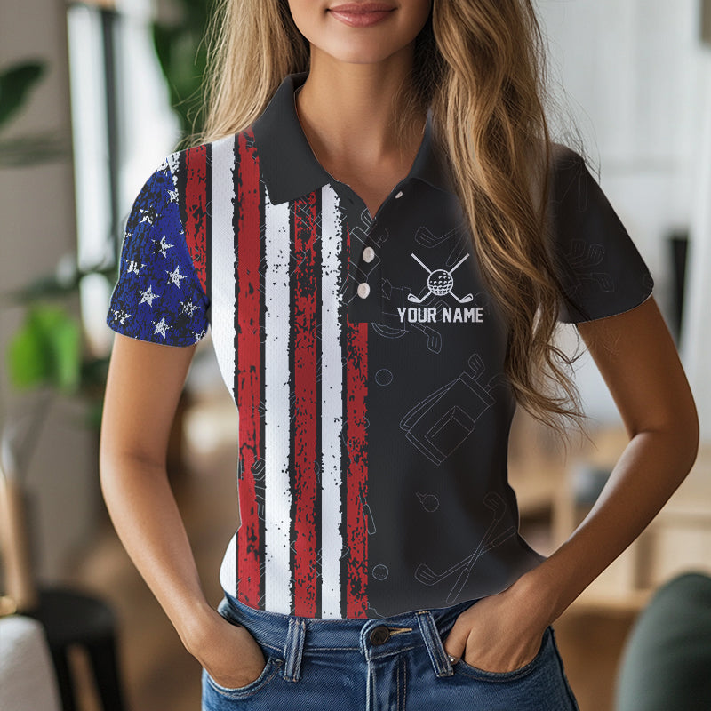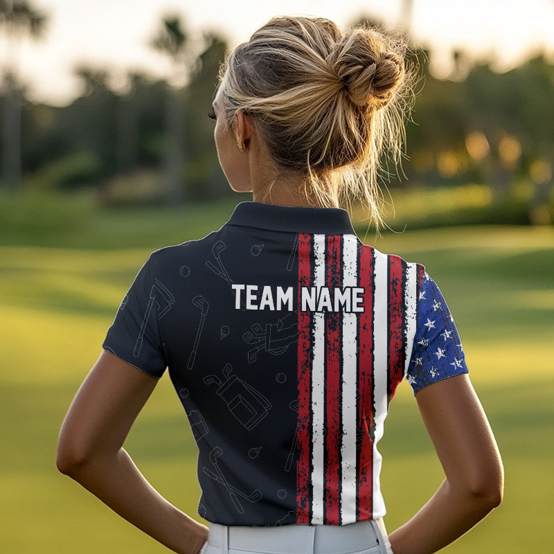 Black Camo American Flag Golf Polo Shirts For Women custom Patriotic golf outfit Team ladies Jerseys NQS9727
