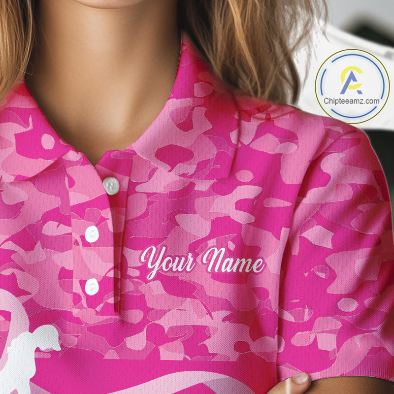 Breast Cancer Awareness golf shirts custom Women golf polos shirts, pink camo ribbon golf shirts NQS10191