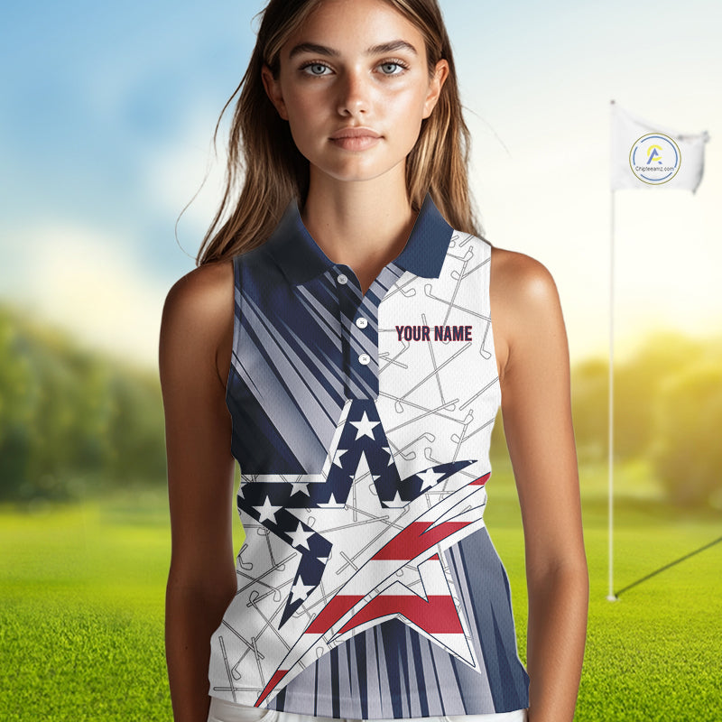 Personalized Red, White and Blue American Flag Star Golf Camo sleeveless polo shirts, unique golf gift NQS9960