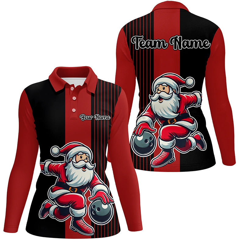 Black and Red Bowling Shirts For Women Custom Funny Santa Christmas Bowling Team Uniform Jerseys NQS8809