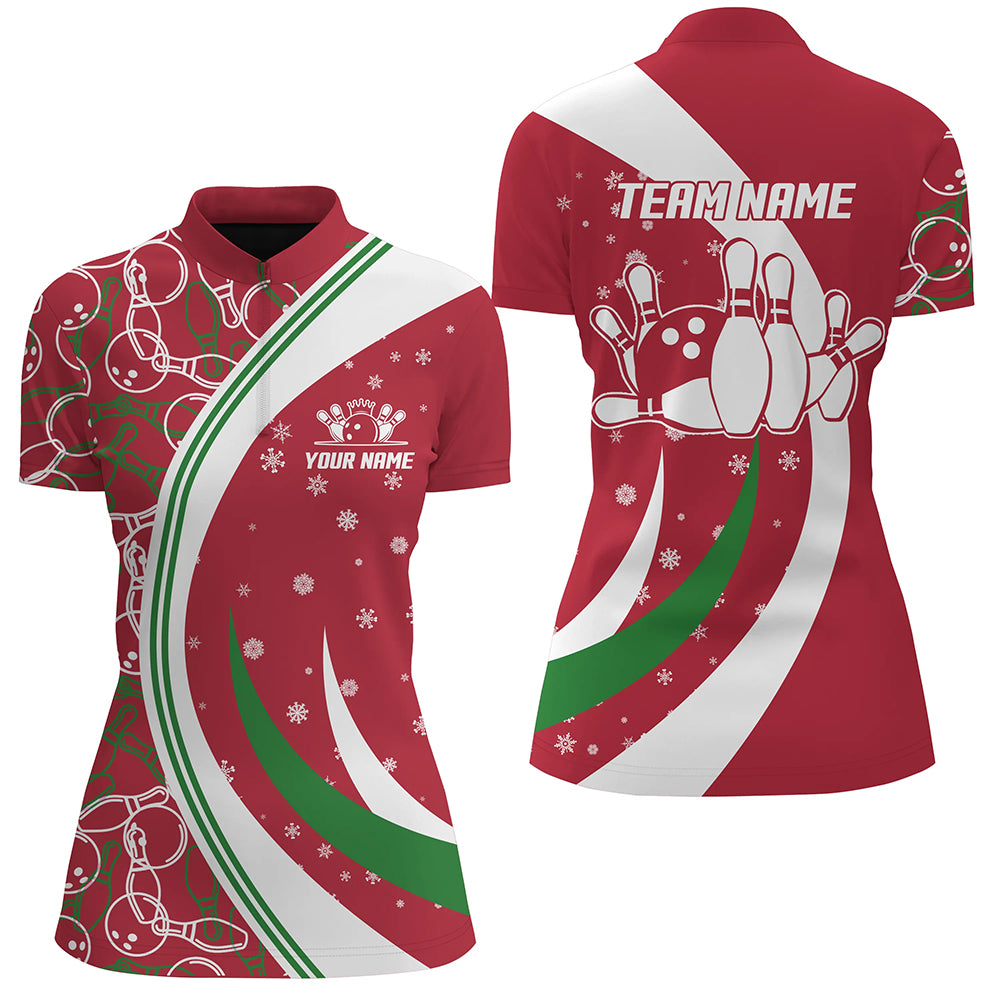 Christmas Bowling Shirt For Women Custom Bowling Jersey Team League Bowling Quarter-Zip Shirt BDT385