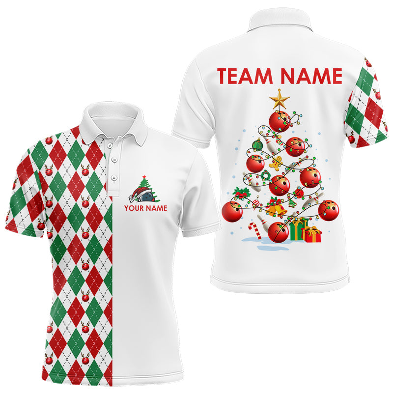 Christmas Tree Bowling Shirts For Men custom red, white, green argyle pattern Bowling Team Jerseys NQS9061