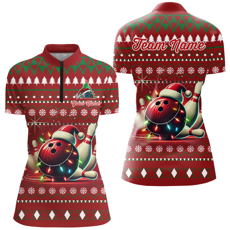 Funny ugly Christmas Red Women's Bowling Shirts Custom Team Bowling Jerseys Xmas Gift for bowlers NQS8967