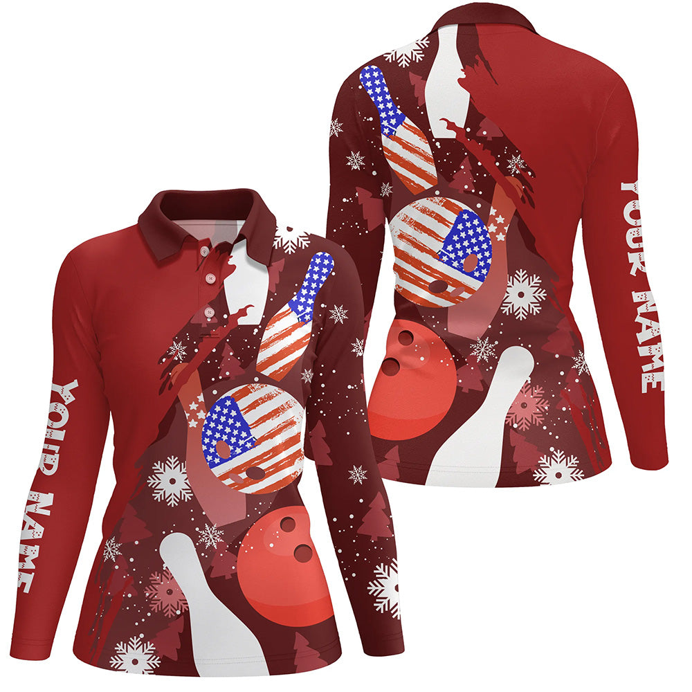 Personalized Christmas American flag Bowling Polo shirt For women custom red bowling team jerseys NQS6805