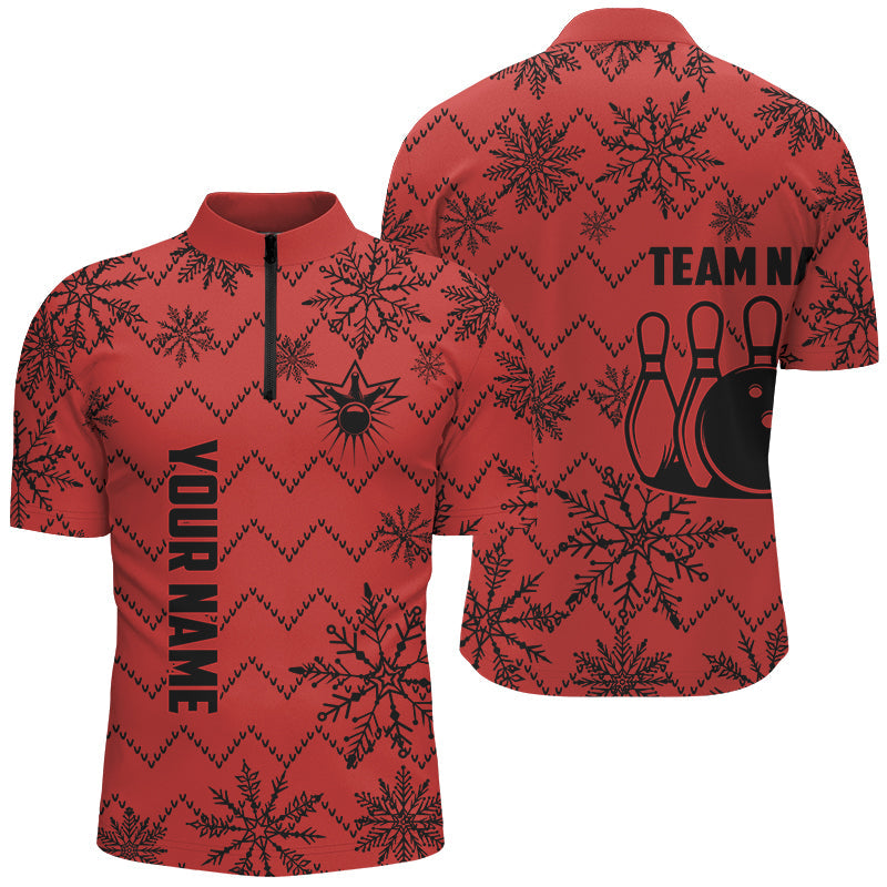 Red Ugly Christmas snowflake pattern Men Bowling Polo, 1/4 zip shirts Custom Xmas Team Bowling Jersey NQS8972