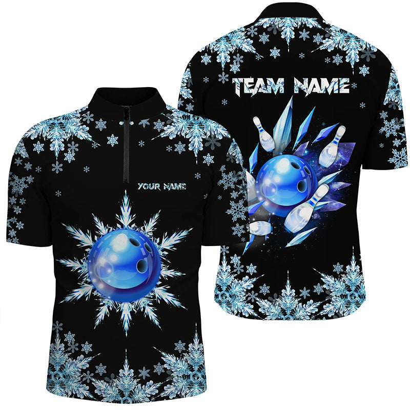 Snowflake Ice Blue Bowling ball and pins Custom Bowling Team Shirts For Men, Christmas Bowling Jerseys NQS8600