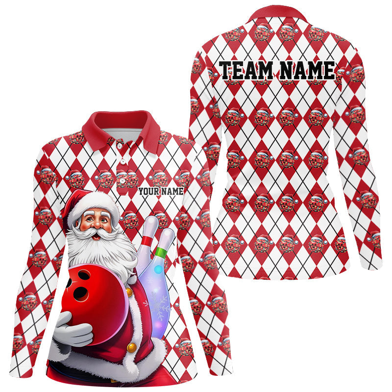 White And Red Bowling Argyle Pattern Custom Christmas Santa Bowling Team Shirts For Women IPHW7846