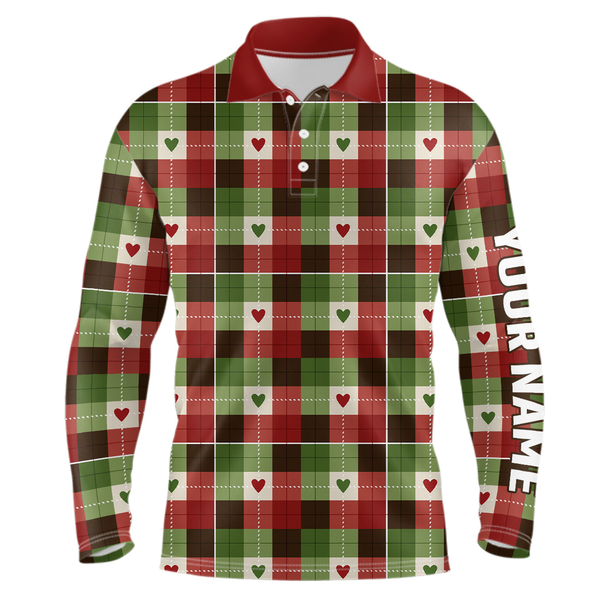 Mens golf polo shirts custom green & red Flat christmas plaid pattern shirts for mens, golfer gifts NQS6584
