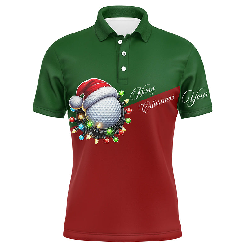 Red and Green Christmas Golf ball Men golf polo shirt custom mens golf tops Christmas golf gifts NQS8869