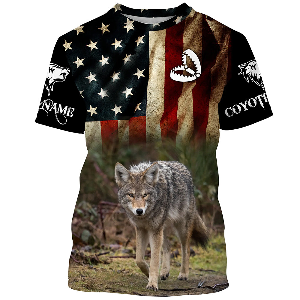 Coyote Trapping American Flag Custom Name 3D All over print shirts, Personalized trapping shirt gift FSD3060