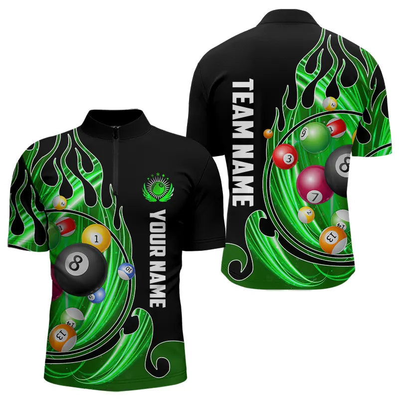3D Billiard Balls Fire Flame Custom Pool Shirts For Men, Billiard League Team Jerseys | Green TDM3754