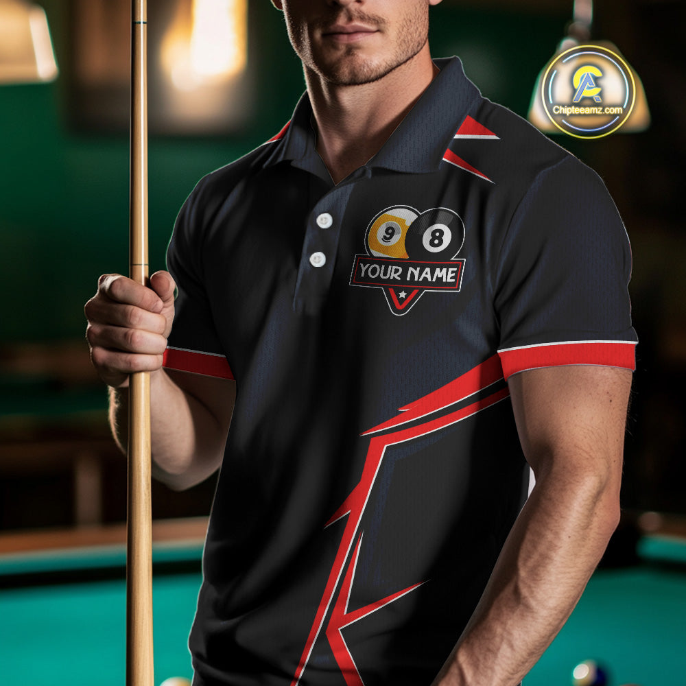 Billiard Jerseys For Men Custom Polo & 1/4 Zip Billiard Team Shirt, 8 Ball & 9 Ball Pool Shirt|Red TDM3830