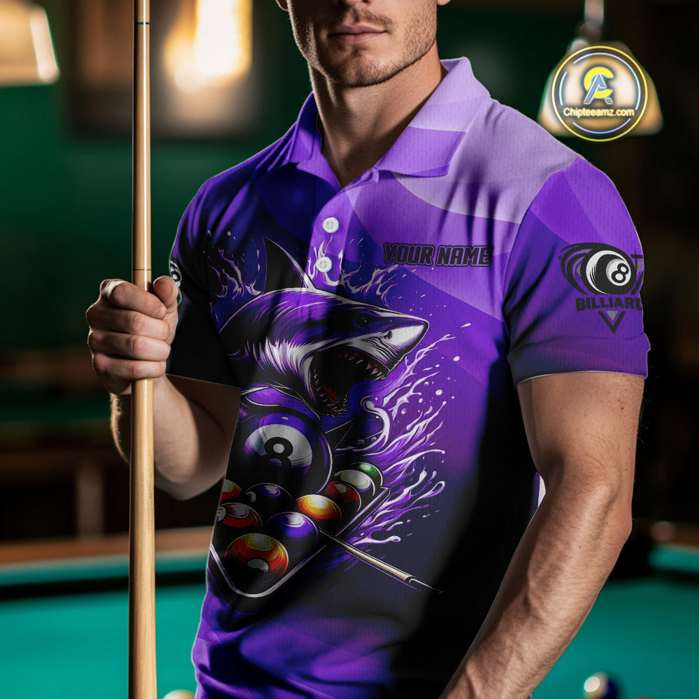 Personalized Purple Pool Ball Shark Billiard Shirts For Men Custom Team League Billiard Jerseys TDM3842