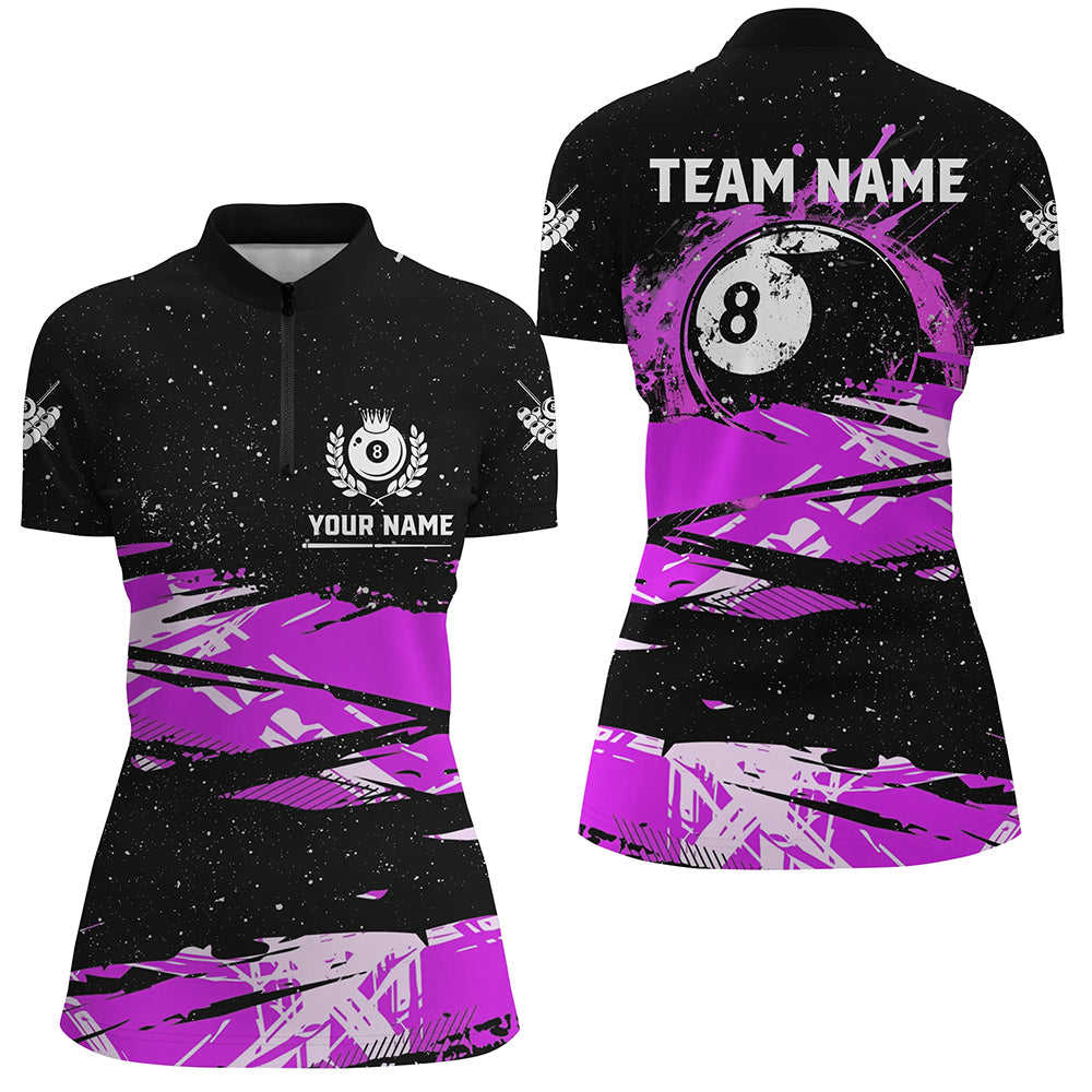 Custom Purple Grunge Billiard 8 Ball Jerseys Shirts For Women, Personalized Billiard Pool Player Gift TDM1940
