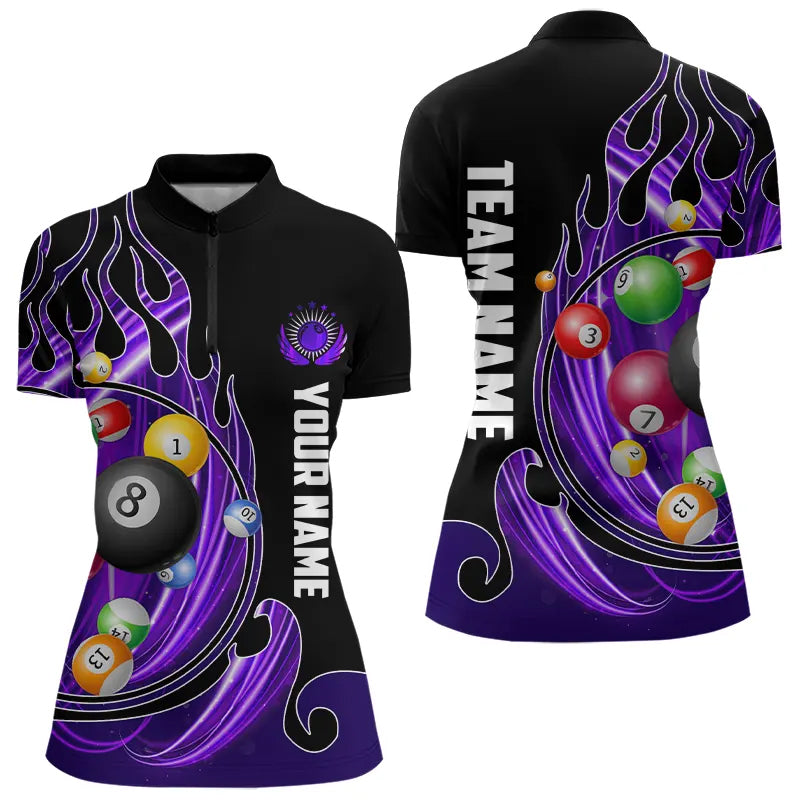3D Billiard Balls Fire Flame Custom Pool Shirts For Women, Billiard League Team Jerseys | Purple TDM3753