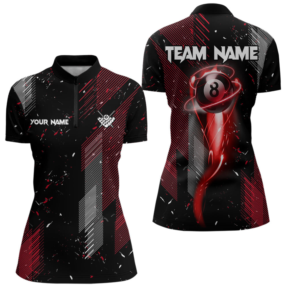 Grunge Black And Red 8 Ball Pool Lights Women's Billiard Shirts Custom Billiard Jersey Polo & 1/4 Zip TDM3780