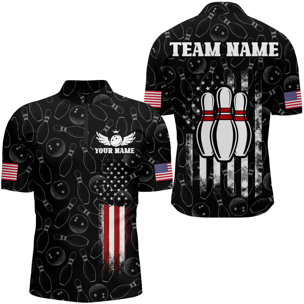 American Bowling Jersey Men Patriotic Bowling Team Shirt Custom Bowling Quarter-Zip Shirt BDT358