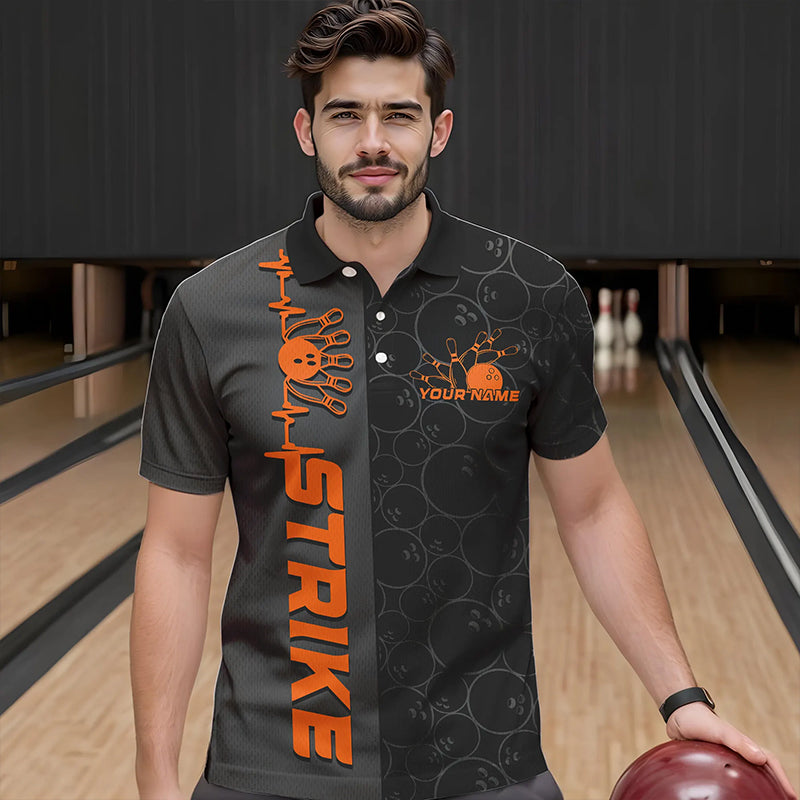 Custom Black And Orange Strike Bowling Polo Shirts For Men, Striking Team Bowling Jerseys IPHW8457
