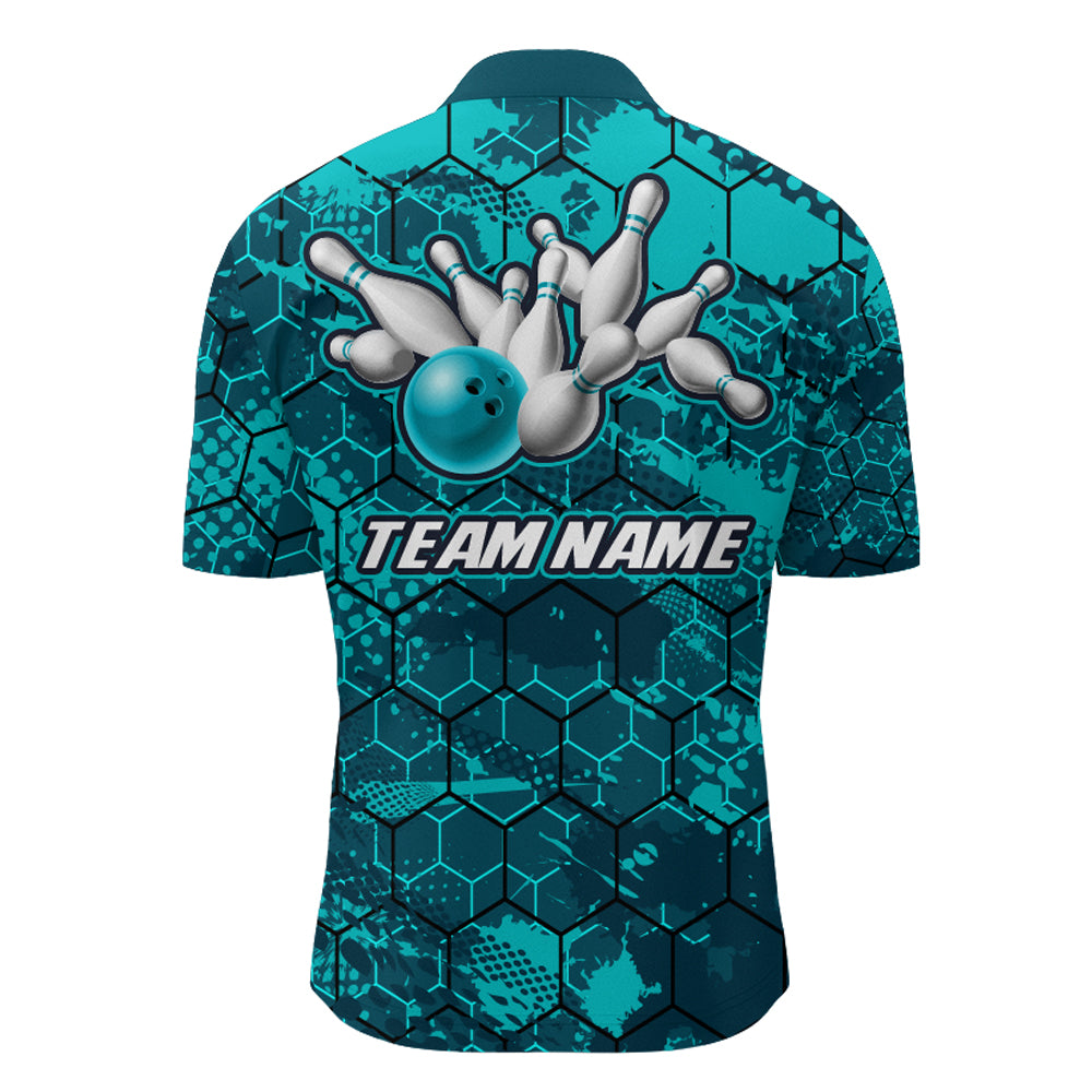 Turquoise Bowling Quarter-Zip Shirt Custom Bowling Jersey For Men Bowling Shirts For Team BDT255