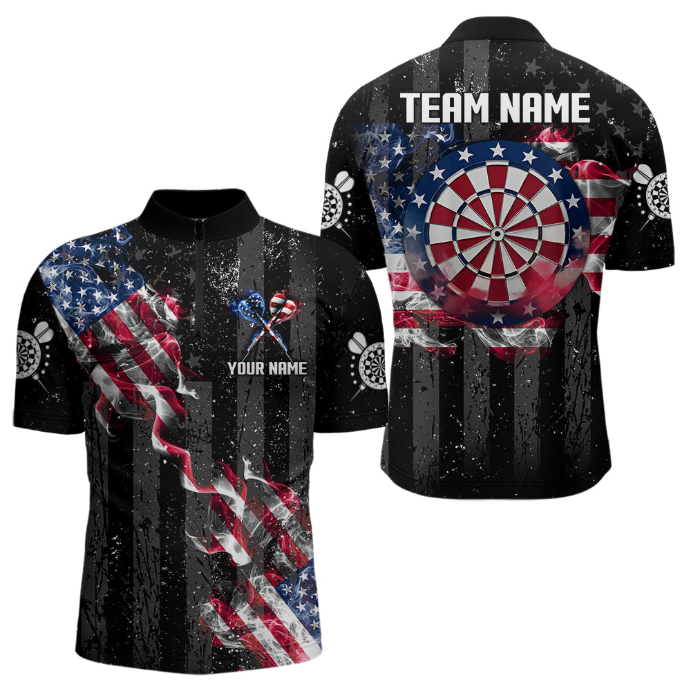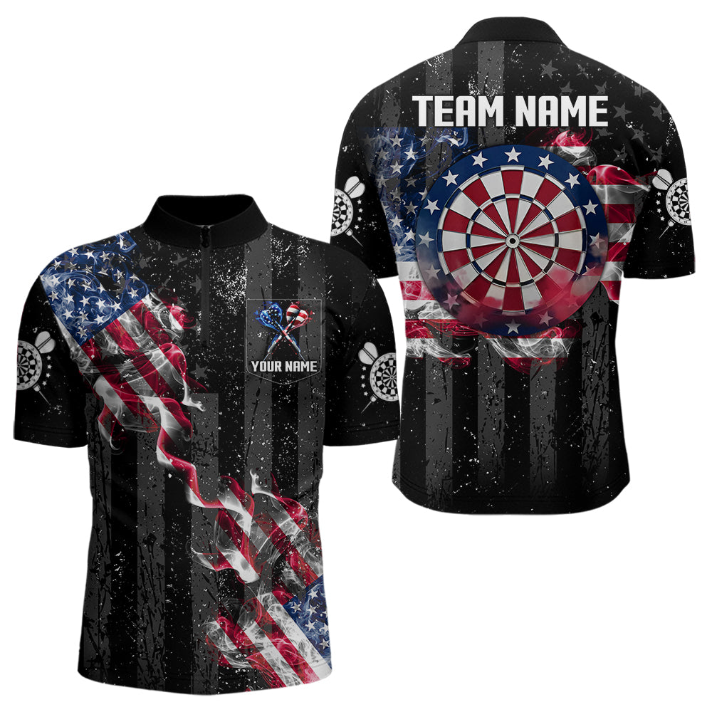 Custom US Flag Smoke Dart Shirt For Men, Patriotic Dart Jersey Pocket Option TDM3514
