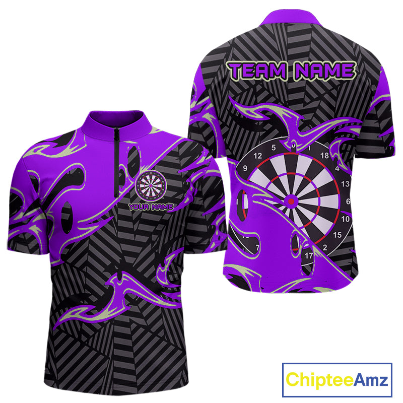 Custom Black And Purple Tribal Flame Dart Shirts For Men, Darts Team Jerseys Polo & Quarter Zip TDM3971