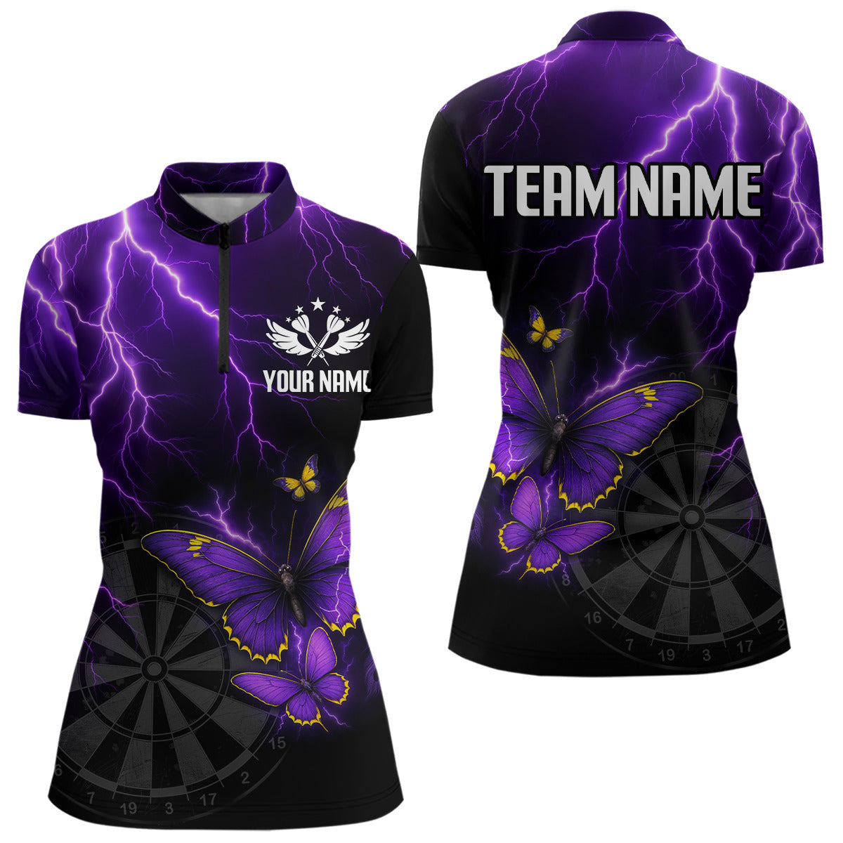 Custom Women's Darts Shirt With Violet Lightning & Glowing Butterfly, Darts Jersey NYN0286