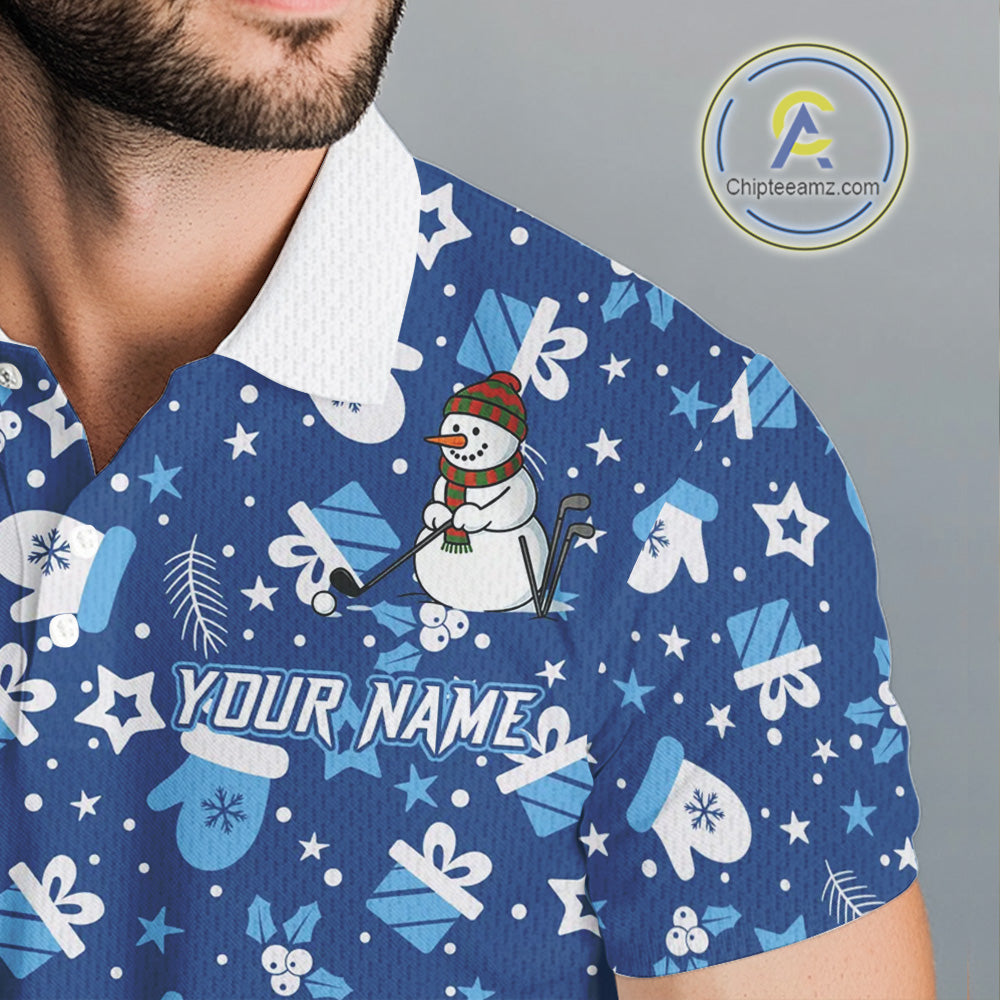 Blue and White Snowman Christmas pattern Golf Polo shirts For men Custom mens Christmas golf shirts NQS11004