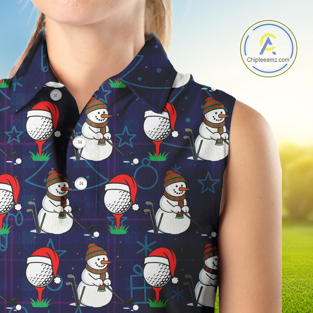 Blue Christmas Plaid pattern snowman Women Sleeveless Polo Shirt custom Christmas ladies golf attire NQS10902