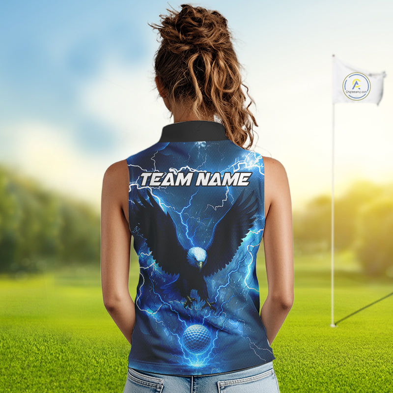 Blue Lightning Thunder Eagle Women Sleeveless Polo Shirt custom ladies golf top, team golf shirts NQS10906
