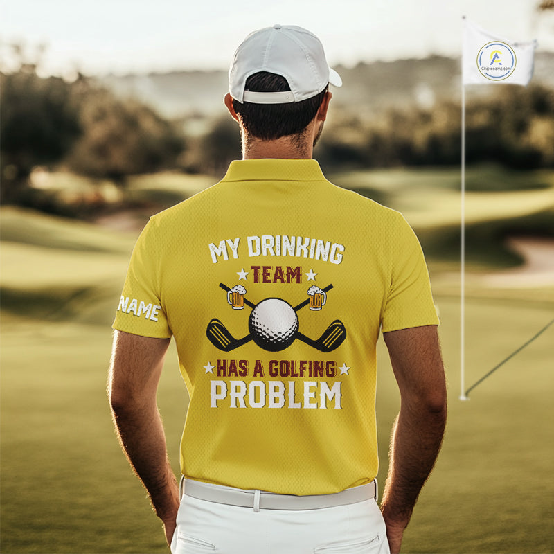Yellow argyle pattern Beer Golf Polo Shirts For Men Custom My drinking team has a golfing problem NQS10863