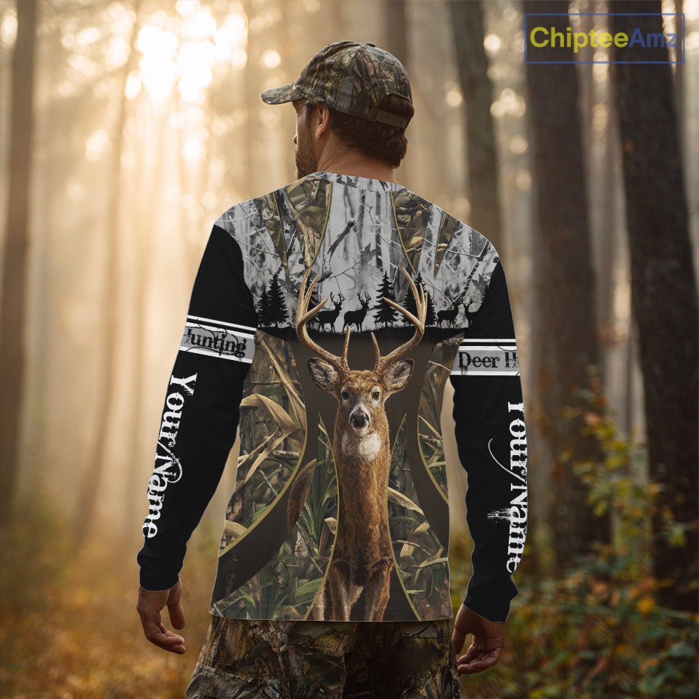 Designed for deer hunters and outdoor enthusiasts, this shirt blends style, comfort, breathable and funtionality in one. The unique hunting-inspired design can be personalized with your name, along with details like the American flag, camouflage patterns, and more - making it the perfect gift ideas for hunters during deer hunting season.ย