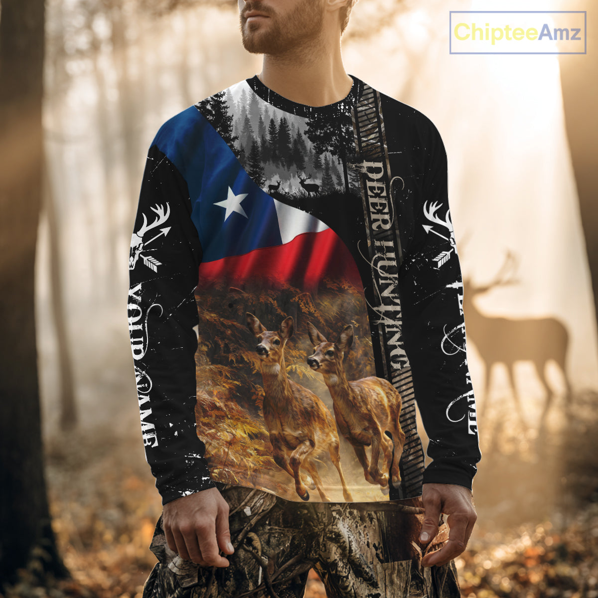 Black Deer Hunting Shirt with Texas Flag for Men - Personalized Hunting Gifts NBT48