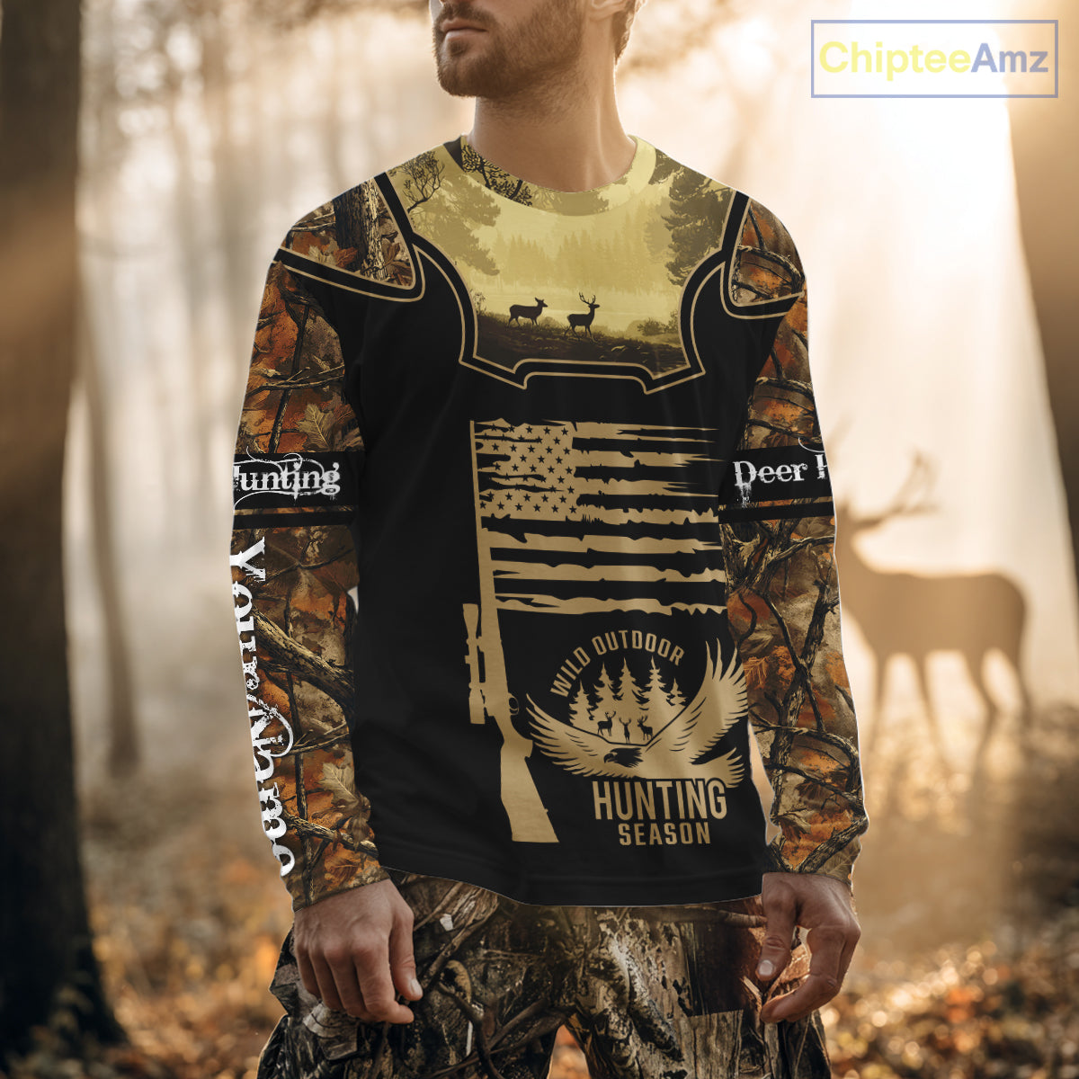 Designed for deer hunters and outdoor enthusiasts, this shirt blends style, comfort, breathable and funtionality in one. The unique hunting-inspired design can be personalized with your name, along with details like the American flag, camouflage patterns, and more - making it the perfect gift ideas for hunters during deer hunting season.